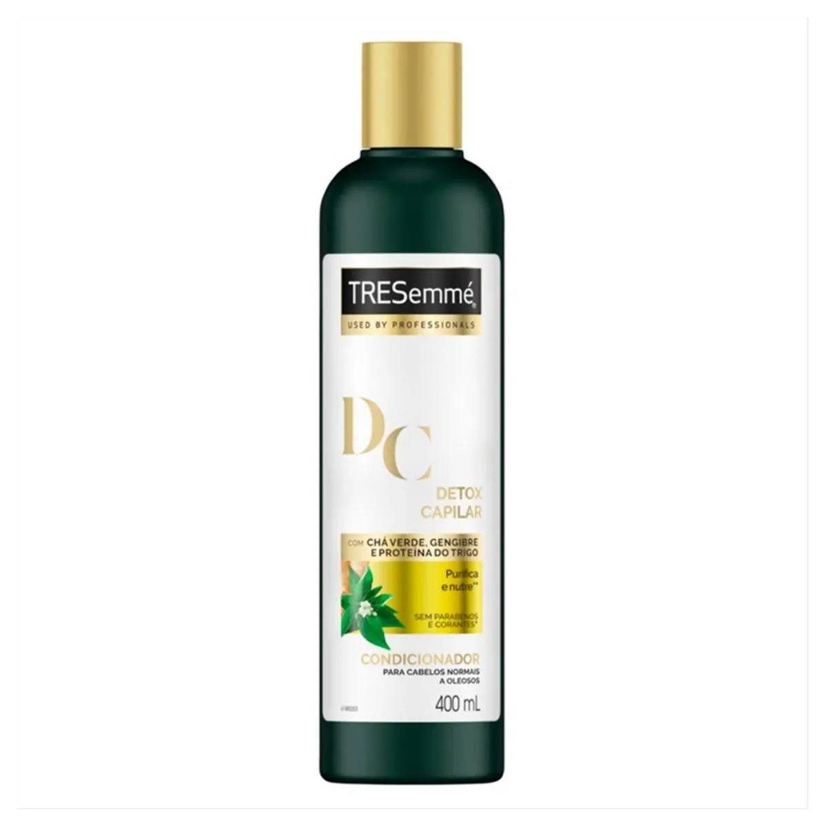 O Condicionador TRESemmé Detox Capilar purifica e nutre os cabelos, deixando-os saudáveis, sem resíduos e purificados. Foi profissionalmente desenvolvido com a exclusiva tecnologia TRES-ComplexTM que desembaraça os fios facilmente e ajuda a controlar o frizz. Sua fórmula é livre de parabenos e corantes e enriquecida com uma mistura de ingredientes botânicos conhecidos por suas propriedades antioxidantes: Chá Verde, Gengibre e Proteína do Trigo. Inspirada nos tratamentos de salão, a linha Detox Capilar é uma maneira acessível de fazer detox no cabelo em casa, eliminando os resíduos que se acumulam durante o dia como fumaça, poluição e suor. O Condicionador TRESemmé Detox Capilar pode ser usado todos os dias e recomenda-se o uso da linha completa para atingir melhores resultados. Desde sua origem em salões de beleza em 1948, TRESemmé® acredita que, quando o seu cabelo está lindo, você se sente mais confiante para brilhar e conquistar o que quiser. Por isso, inspirada nos tratamentos de salão, desenvolveu a linha TRESemmé Detox Capilar: uma maneira acessível de fazer um detox dos cabelos em casa, pois ela elimina os resíduos que se acumulam durante o dia como fumaça, poluição e suor, deixando os cabelos purificados e nutridos. O condicionador da linha foi profissionalmente desenvolvido com a exclusiva tecnologia TRES-ComplexTM que ajuda a controlar o frizz e desembaraçar os fios de uma maneira muito fácil. Além disso, sua fórmula é enriquecida com Chá Verde, Gengibre e Proteína do Trigo, uma mistura de ingredientes botânicos que te ajudam a limpar profundamente e nutrir os fios, todos os dias. Sua fórmula não contém parabenos nem corantes, garantindo um cuidado mais natural para os seus cabelos. Pode ser usado todos os dias e é indicado para normais a oleosos. MODO DE USO:1. Após o shampoo, aplique o condicionador no comprimento dos cabelos, evitando a raiz. 2. Com a ajuda dos dedos, vá desembaraçando os fios aos poucos, para deixá-los bem soltos e macios. Você vai perceber como a tecnologia TRES-Complex deixará essa etapa ainda mais fácil. 3. Enxágue bem. Para melhores resultados, use a linha completa de TRESemmé Detox Capilar. Cabelos purificados e nutridos, todos os dias! Use este e os demais produtos de TRESemmé para você ter cabelos lindos, macios e fáceis de arrumar, e aquela confiança extra para você estar pronta para tudo! TRESemmé. Acabamento profissional, nas suas mãos.