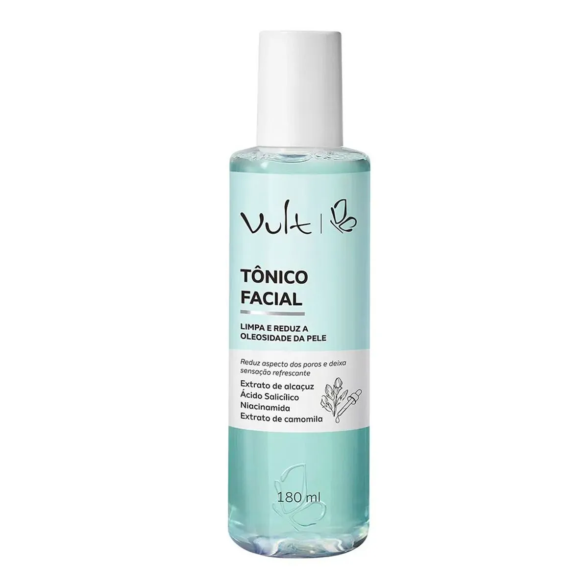 O TÔNICO LIMPEZA FACIAL VULT limpa profundamente a pele, reduzindo a oleosidade e melhorando os aspectos dos poros. Não altera o pH da pele, reduz o aspecto avermelhado da pele e diminui a aparência e quantidade de acnes. Sensação refrescante ao passar o produto no rosto e deixa a pele macia. Contém extrato de Alcaçuz, Bisabolol, Ácido Salicílico, extrato de Mirtilo, Niacinamida e extrato de Camomila.