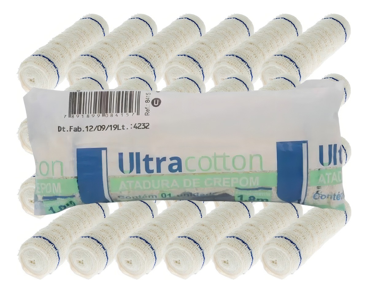 Atadura de crepom de largura 10 cm e comprimento 1,8 m, pacote com 36 unidades. Produto não estéril, indicado para suporte, compressão suave e uso ortopédico. Pode ser esterilizado em autoclave, óxido de etileno ou raios gama. Armazene em local limpo, seco e protegido da luz. Ideal para cuidados básicos em casa ou em atendimentos simples, oferecendo praticidade com material macio.