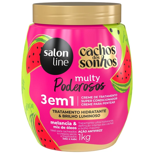 Creme de Tratamento Salon Line Cachos dos Sonhos Melancia 3 em 1 é um tratamento leve e perfumado desenvolvido para cabelos cacheados que buscam hidratação, definição e controle do frizz em um só produto. Formulado para realçar a textura natural dos fios, proporciona toque macio e efeito de memória para cachos mais definidos e com brilho.