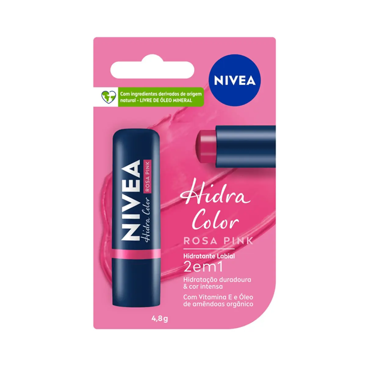 NIVEA Hidra Color Rosa Pink combina cor intensa com o cuidado confiável de NIVEA. Com fórmula livre de óleo mineral, NIVEA Hidra Color é enriquecido com manteiga de karité, óleo de amêndoas orgânico, vitamina E. De cor rosa intenso, tem aroma floral suave especialmente desenvolvida para o uso diário.