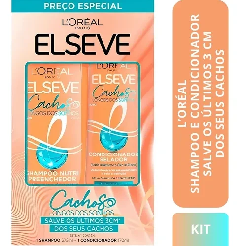 Formulado para cabelo cacheado, o kit Elseve auxilia na manutenção da elasticidade e do brilho, sem deixar resíduos pesados. A combinação é prática para quem procura um cuidado completo em dois passos, facilitando a rotina de lavagem e finalização.