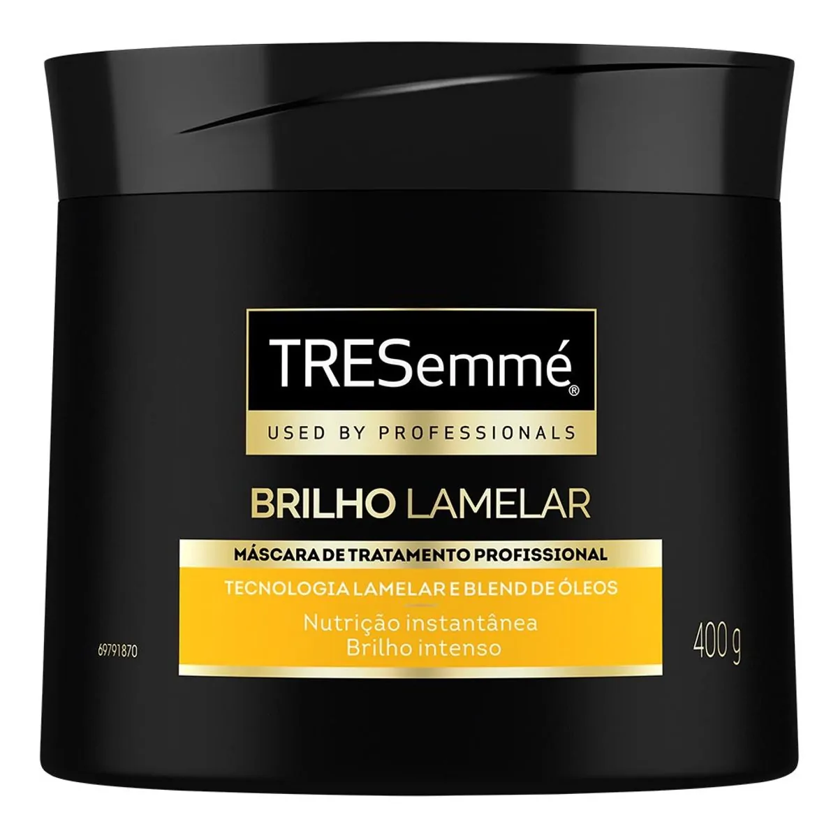 • A Máscara de Tratamento TRESemmé Brilho Lamelar possui tecnologia lamelar, que corrige instantaneamente as irregularidades dos fios, devolvendo uma superfície uniforme, nutrida e com brilho intenso • Máscara de tratamento que blinda os fios com exclusivas lamelas para um cabelo com 7X mais brilho desde o primeiro uso* e efeito reflexivo • Com a revolucionária tecnologia Lamelar combinada com exclusivo blend de óleos, proporciona nutrição superior imediata e uma correção instantânea das irregularidades capilares para cabelos com brilho • A Máscara de Tratamento TRESemmé Brilho Lamelar garante o efeito gloss na sua máxima intensidade • A linha TRESemmé Brilho Lamelar proporciona nutrição e brilho intenso aos fios • Tratamento inovador de salão, sem pesar os fios. Para todos os tipos de cabelos Conheça a nova linha TRESemmé Brilho Lamelar para cabelos com efeito gloss em sua máxima intensidade para cabelos com 7X mais brilho*. Um revolucionário tratamento de salão, tendência internacional, agora em sua casa. A Máscara de Tratamento Profissional TRESemmé Brilho Lamelar foi desenvolvida com fórmula profissional para trazer mais brilho para todos os tipos de cabelo, do liso ao cabelo ondulado. A linha oferece: 1. Efeito gloss em sua máxima intensidade: Com um exclusivo blend de óleos, a linha proporciona um efeito gloss deslumbrante, resultando em um cabelo impactante e luminoso desde o primeiro uso. 2. Revolucionária tecnologia lamelar: Com a tecnologia lamelar inovadora, os fios serão tratados fortemente, destacando o brilho do cabelo e proporcionando nutrição superior imediata e uma correção instantânea das irregularidades capilares. Experimente também a dupla queridinha imbatível, junto do shampoo e condicionador TRESemmé Brilho Lamelar, que trata e finaliza seu cabelo: 1. Trata: Sérum de Tratamento Brilho Lamelar pode ser usado todos os dias tanto como tratamento ou como creme leave-in; 2. Finaliza: Óleo finalizador nutritivo Brilho Lamelar alinha e restaura as pontas para brilho imediato. TRESemmé, a marca aprovada por 9 em cada 10 cabeleireiros** *Avaliado por painel de experts. Com uso da linha completa. **Pesquisa realizada com profissionais de salão de beleza no Brasil.