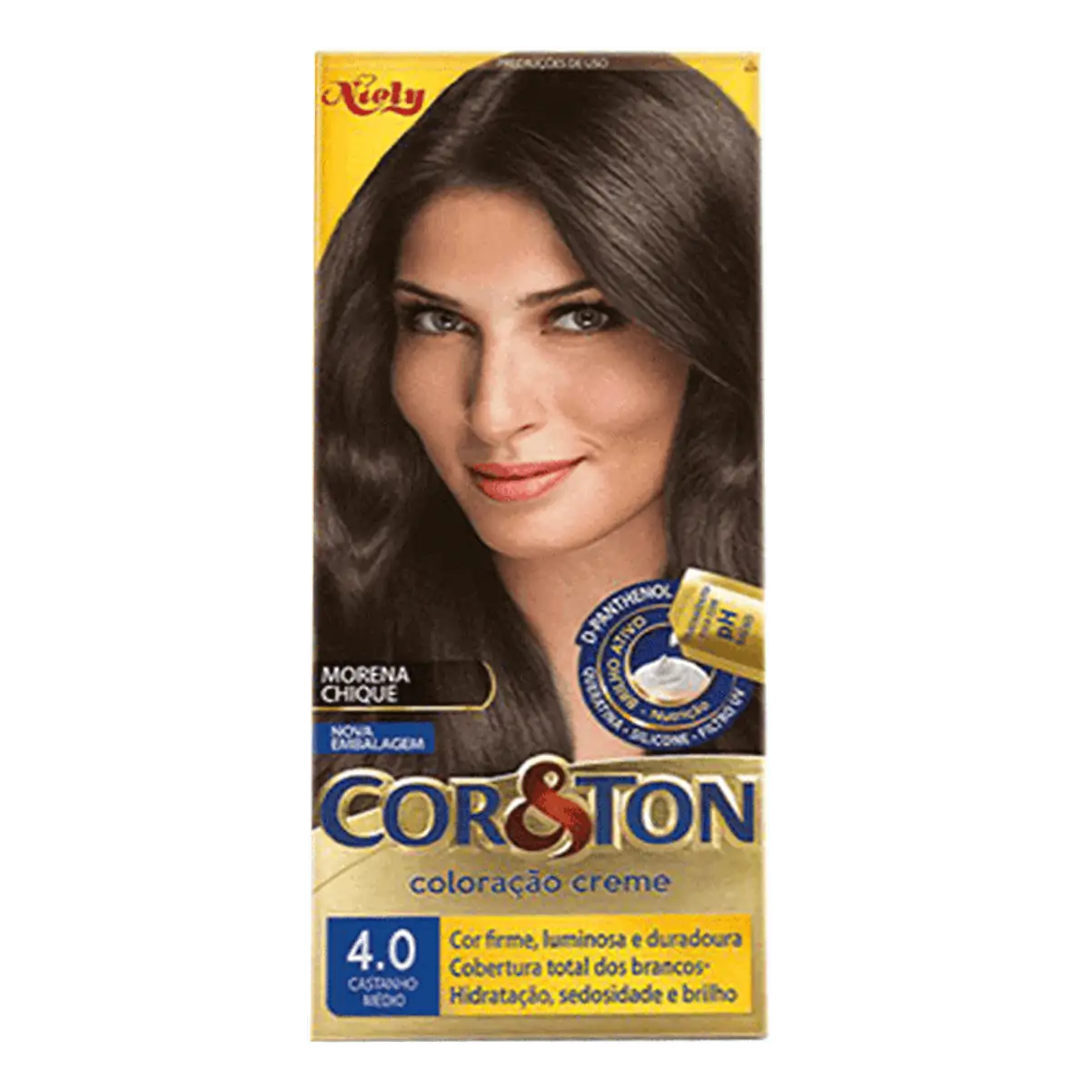Tintura Niely Cor&Ton Castanho Médio 4.0 é uma coloração creme permanente com fórmula de altíssima qualidade. Ela garante uma perfeita cobertura dos fios brancos e ainda oferece 33 nuances de cores, para escolher a que mais combina com você. A Niely Cosméticos está sempre buscando o melhor para os seus cabelos. E é por isso que a nova bisnaga traz o tratamento fixa cor para cuidar dos seus cabelos como eles merecem. Com exclusiva fórmula hidratante, ela garante cor mais rica, brilhante e duradoura.