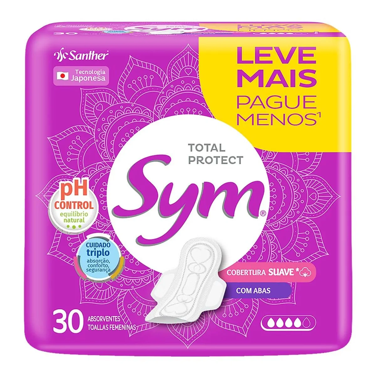 Absorvente com Abas Total Protect Suave Sym Pacote 30 Unidades Leve Mais Pague Menos