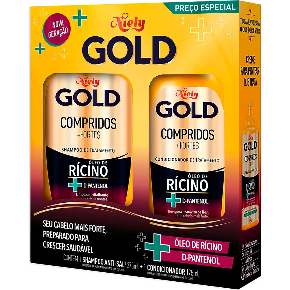 O Kit Niely Gold Compridos + Fortes reúne o que há de melhor para cuidar de cabelos longos e exigentes: o shampoo de 300 ml e o condicionador de 200 ml, com fórmula sofisticada e eficaz.