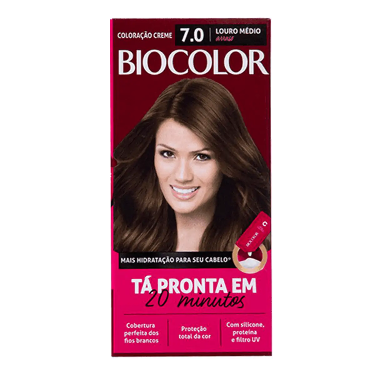 A Tintura Biocolor Coloração Creme Louro 7.0 Mini Kit oferece tudo o que você precisa para colorir os cabelos em casa. Com fragrância suave que suaviza o cheiro da amônia tornando a aplicação mais agradável, a Tintura Biocolor possui ação rápida, deixando os cabelos na cor desejada em apenas 20 minutos. Enriquecida com ingredientes condicionantes, silicone, proteína e filtro UV, oferece hidratação e praticidade. Com bico aplicador e uma cor que está em alta na temporada, Biocolor se preocupa em garantir uma aplicação rápida e prática.